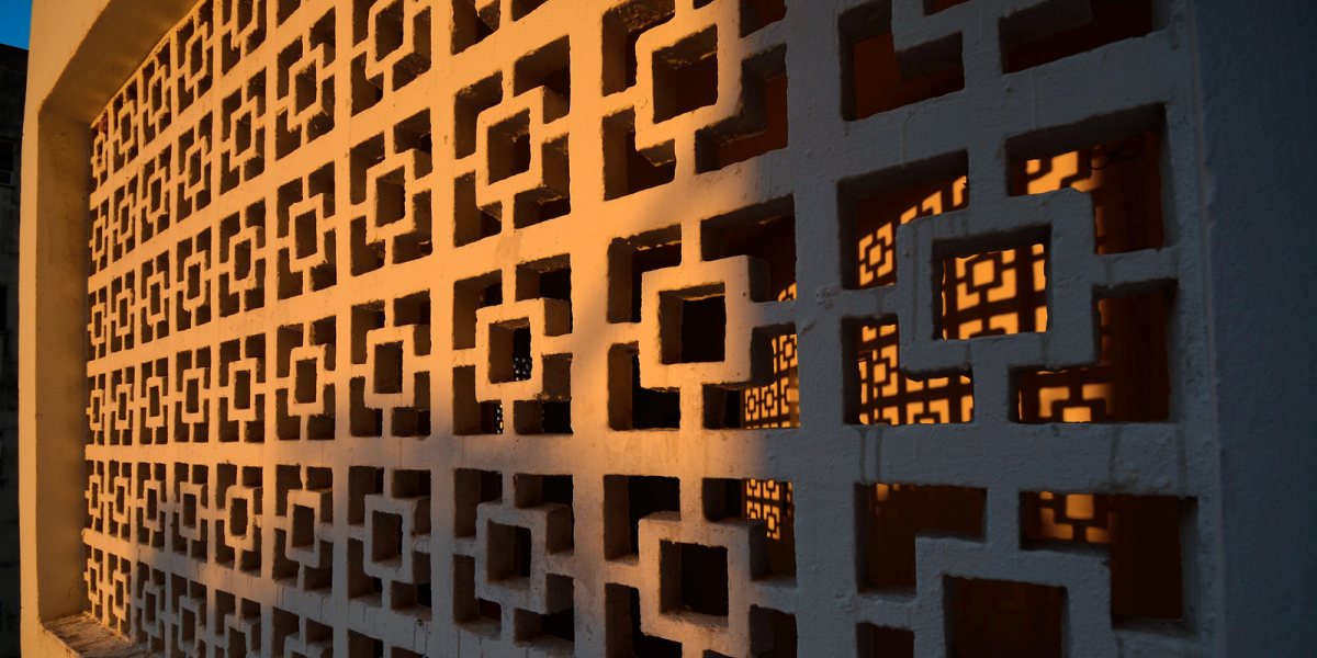Unlike the muxarabi, which is usually constructed with wood in more detailed and complex patterns, the cobogó was designed with a simpler and more modular. Its initial production in cement was later adapted to other materials, such as ceramics, glass and clay, offering greater flexibility and aesthetic variety.