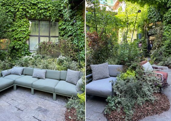 An oasis of peace and leisure. This is precisely how Nardi’s creative director designed the Otium garden: an indoor and outdoor green space where the company has placed its new arrival, the Maximo modular sofa. Nardi invites you to interpret the moment of rest as a regenerative opportunity. The garden is full of thin vertical mirrors and small waterfalls which amplify the regenerating effect, an interior space where you can listen to a few verses of poetry and a tea room where you can take a break.